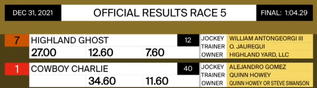 While researching this article, I found out that there are several speed rating systems that attempt to put each performance into perspective. The Beyer Speed Figure is one such system. These systems put a big emphasis on track conditions to normalize winning times. Stakes races will typically be above 100 and elite horses over 120. On the Equibase “E Speed Figure” system Cowboy Charlie scored an 80 while coming in second. In his prior race, which he won, he scored a 63. While he won’t be heading to the Kentucky Derby anytime soon, he is a promising 2 year old. I can’t wait to see him in the 2022 season.